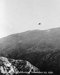 1957 - Holloman Air Force Base, New Mexico. Taken on October 16. This photo was taken by Ella Louise Fortune, a nurse at the Mescalero Indian Reservation near Three Rivers, N. M.She took the picture while driving Highway 54 about 1:30 PM. She stated that the UFO was motionless over Holloman AFB.